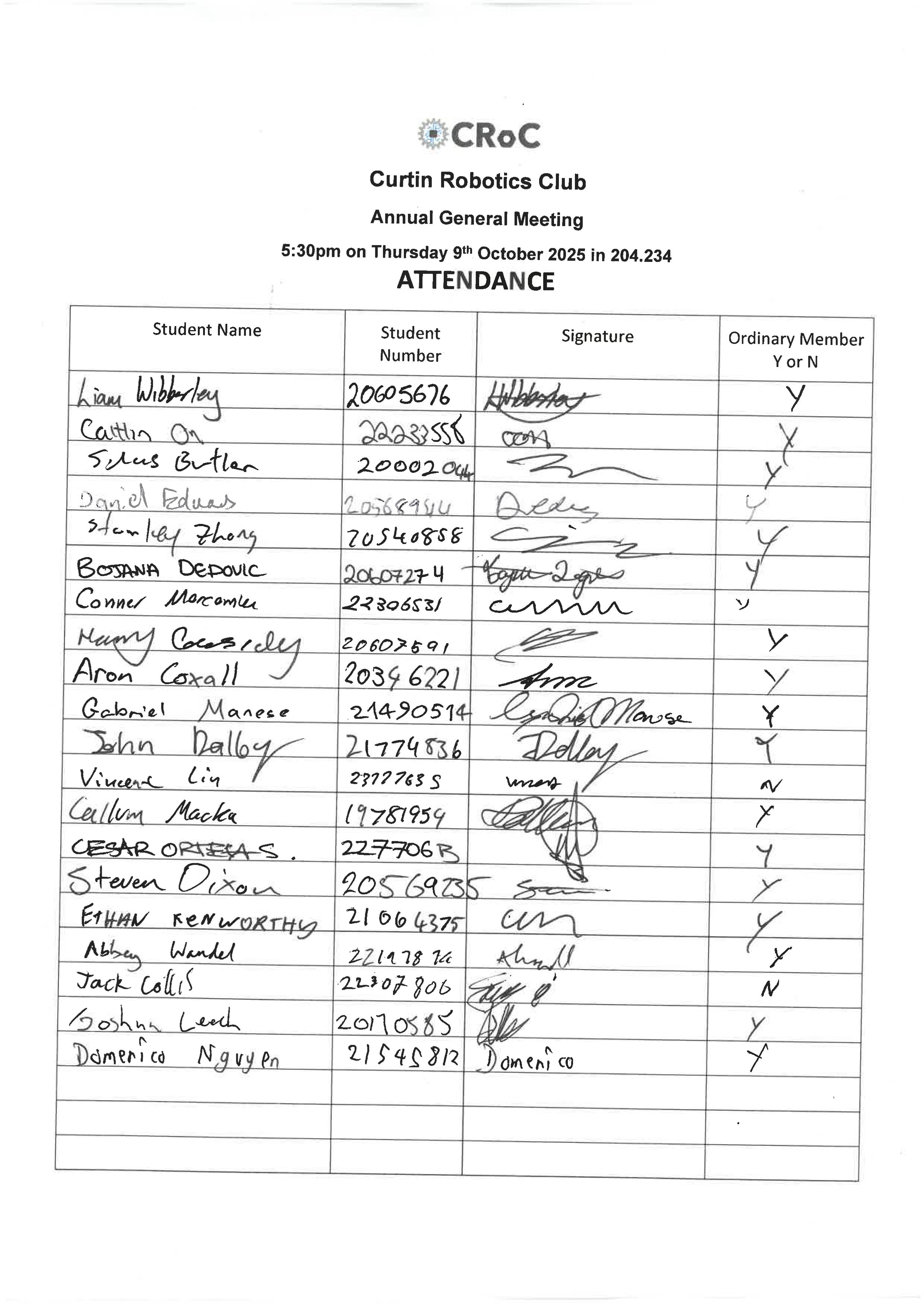 powered by TidyHQAnnual General Meeting - Curtin Robotics Club